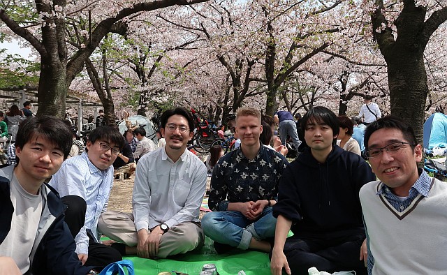 大阪城公園で開催したフィンランドからの交換留学生歓迎花見の様子です。