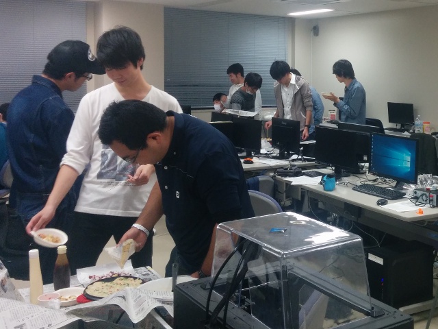 ゼミ室で開催したたこ焼きパーティーの様子です。