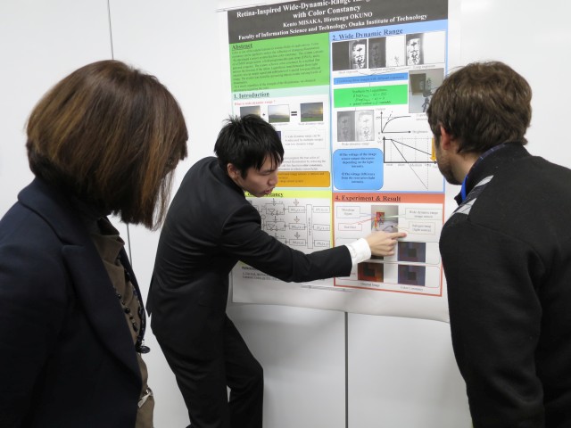 北山祭(学園祭)の研究展示イベント後の様子です。「生き物に学んだロボットビジョン」と題したデモ展示を行い、学部長賞を受賞しました。