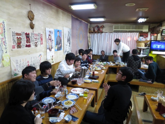 大学近くの居酒屋で開催した忘年会の様子です。