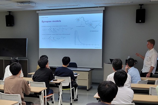 当研究室で半年研究活動を行ったフィンランドからの交換留学生の成果発表の様子です。